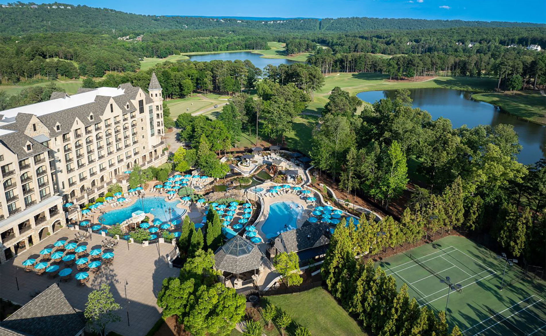 Das Resort liegt nur 10 Minuten von Auburn und der historischen Innenstadt von Opelika entfernt. Das Resort verfügt über 221 großzügige Gästezimmer, darunter mehrere Luxussuiten, die allesamt mit moderner Ausstattung, Balkonen und Blick auf die Seen oder die umliegende Natur punkten. Die Anlage liegt inmitten eines rund 2.000 Hektar großen Areals und bietet eine besonders ruhige, naturnahe Atmosphäre. Kulinarisch überzeugt das Resort mit Restaurants wie dem Southern Oak, das moderne Südstaatenküche serviert, sowie der Splash Bar am Pool und weiteren Bars, die regionale Spezialitäten und Cocktails anbieten.
