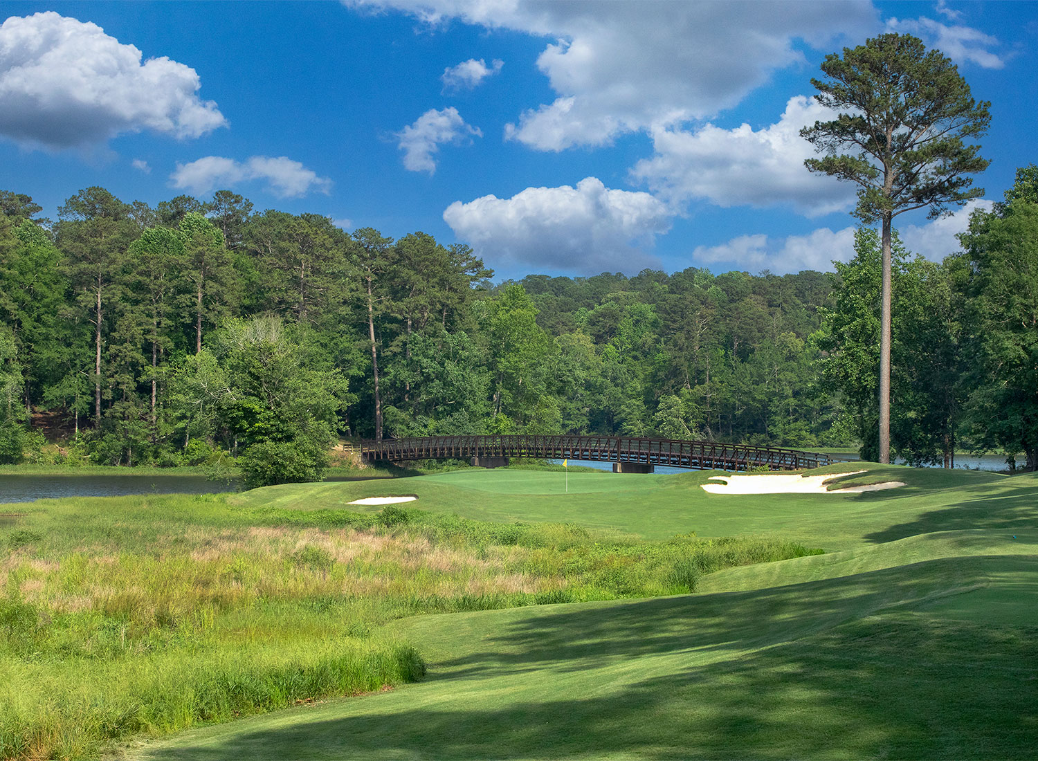 Der Judge schließlich beeindruckt mit 14 Löchern am Wasser und einem dramatischen Inselgrün. Vom ersten Tee – 60 Meter über dem Fairway – öffnet sich der Blick auf den Alabama River und die Skyline von Montgomery.