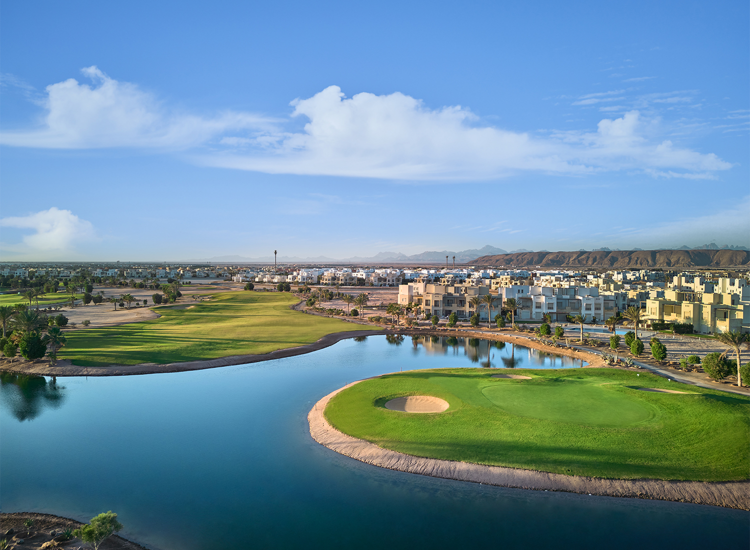 Der 18-Loch-Meisterschaftsgolfplatz El Gouna bietet das ganze Jahr über die Möglichkeit zum Golfen unter ganzjährig sonnigem Himmel in einer Umgebung mit atemberauben dem Panoramablick auf die Berge des Roten Meeres und türkisfarbenen Gewässer.