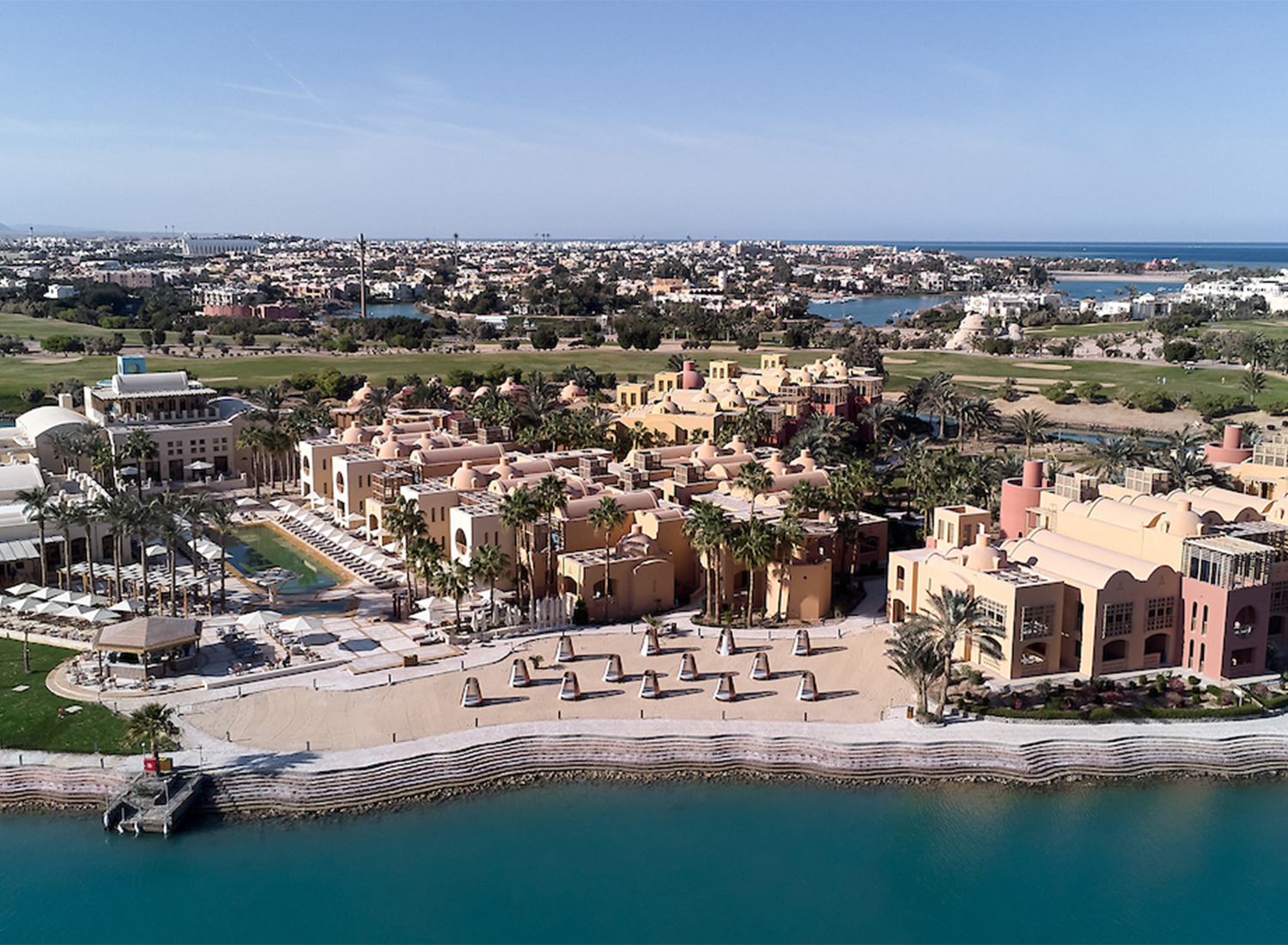 Das 2023 vollständig renovierte Fünf-Sterne-Golf-Resort El Gouna liegt auf einer Halbinsel, umgeben von ruhigen Lagunen und einem eigenem Strand.