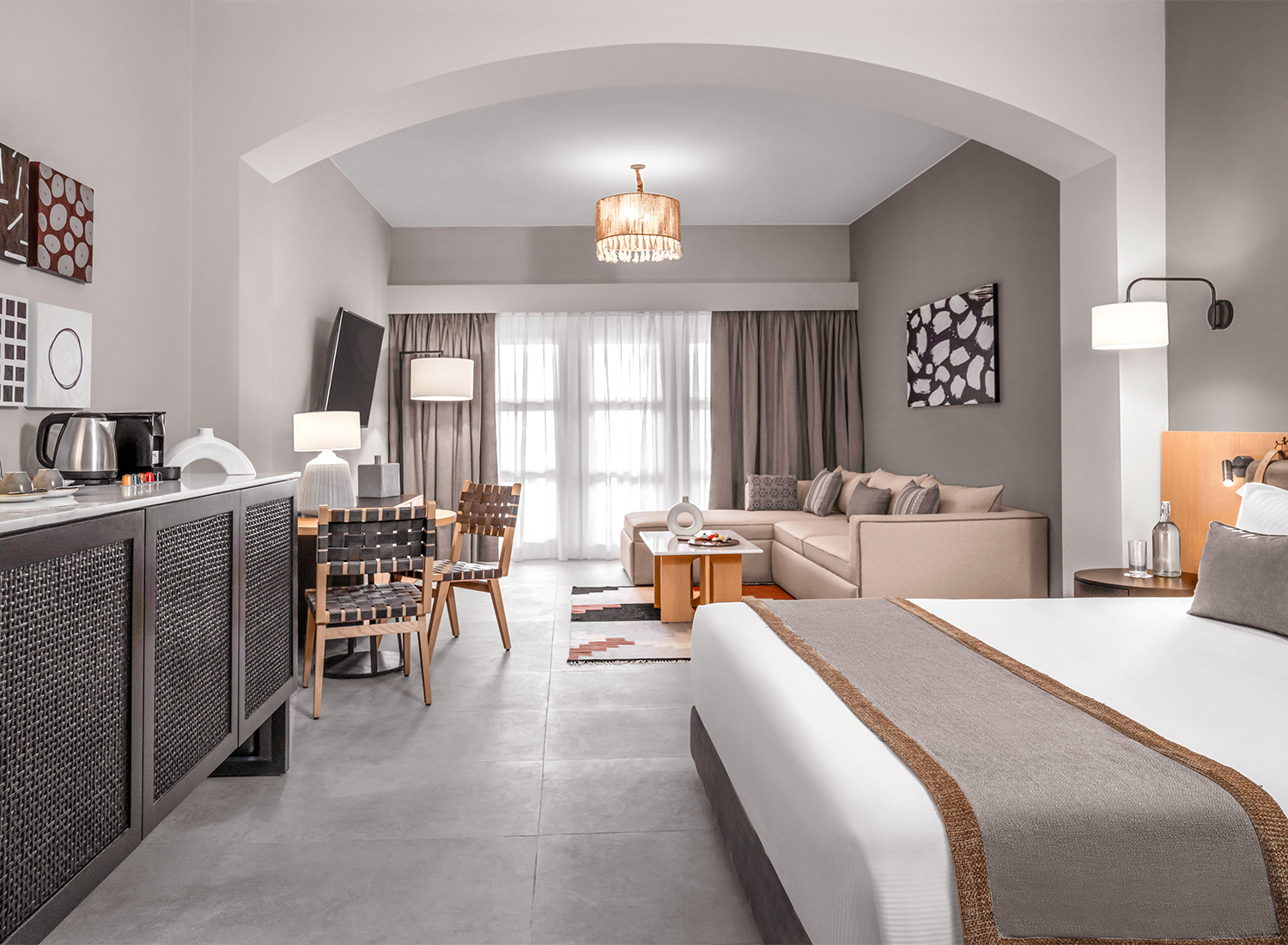 Das 2023 vollständig renovierte Fünf-Sterne-Golf-Resort El Gouna liegt auf einer Halbinsel, umgeben von ruhigen Lagunen und einem eigenem Strand. Rund um das Resort bieten sich atemberaubende Panoramaansichten auf die Berge des Roten Meeres, türkisfarbenen Wasserstraßen unter ganzjährig sonnigem Himmel. Das Resort in nubischer Architektur, mit gewölbten Fenstern und Kuppeln, beheimatet insgesamt 268 elegante und moderne Zimmer und Suiten.